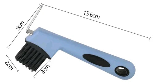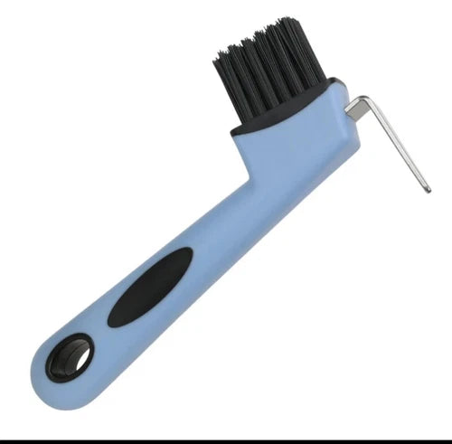 Hoof pick with brush, designed for horse/goat/animal hoof care. It features a non-slip and comfortable handle in a light blue colour.